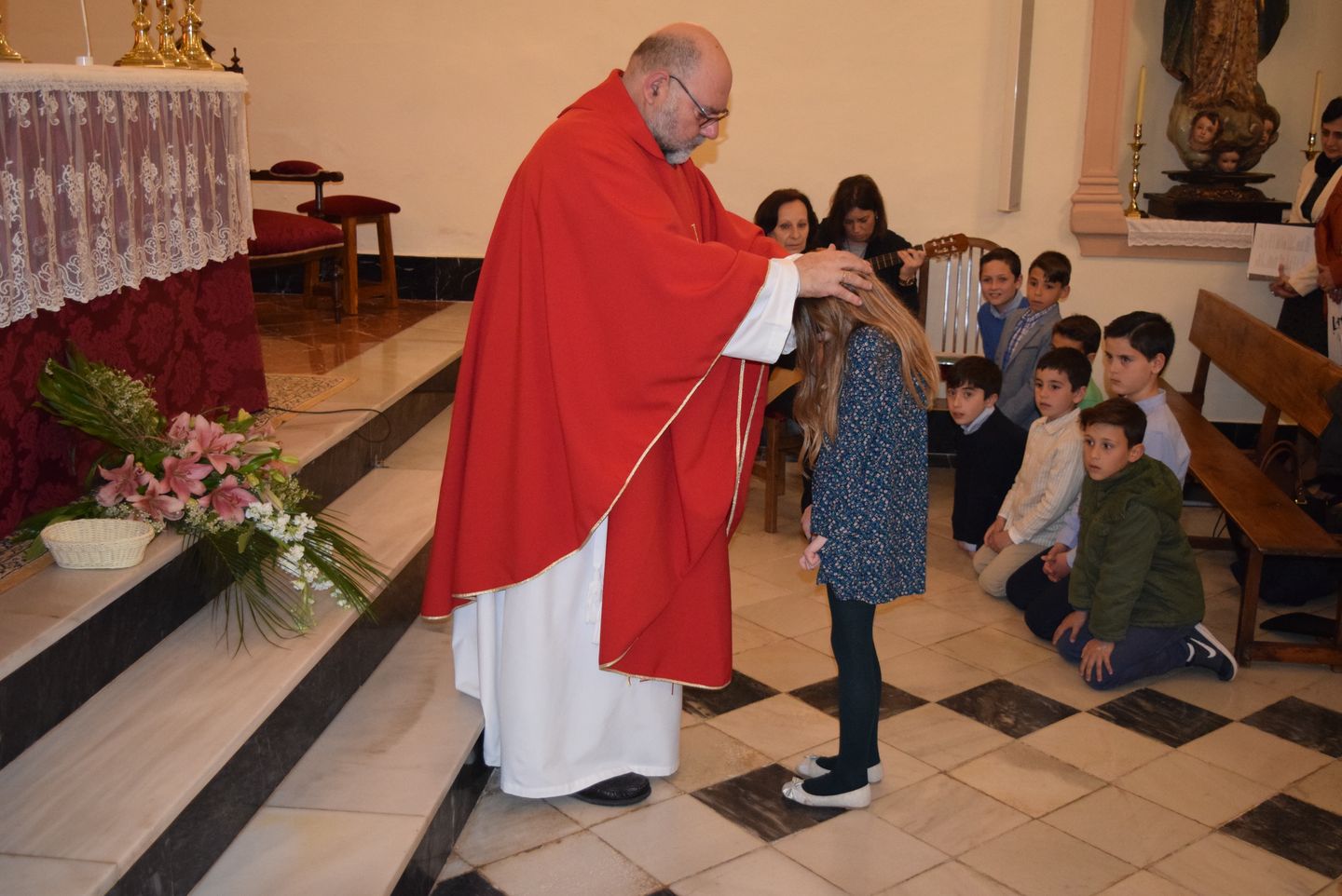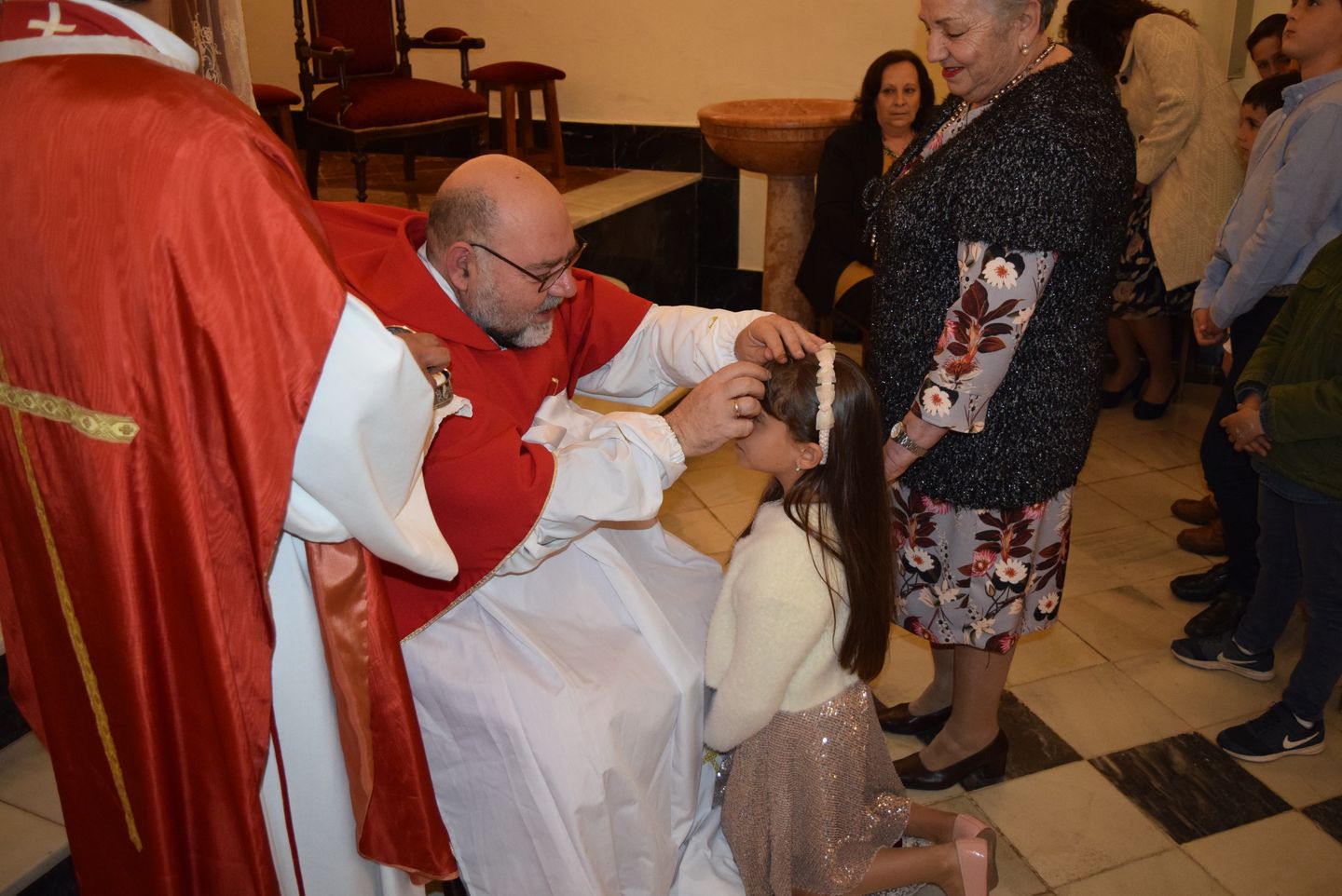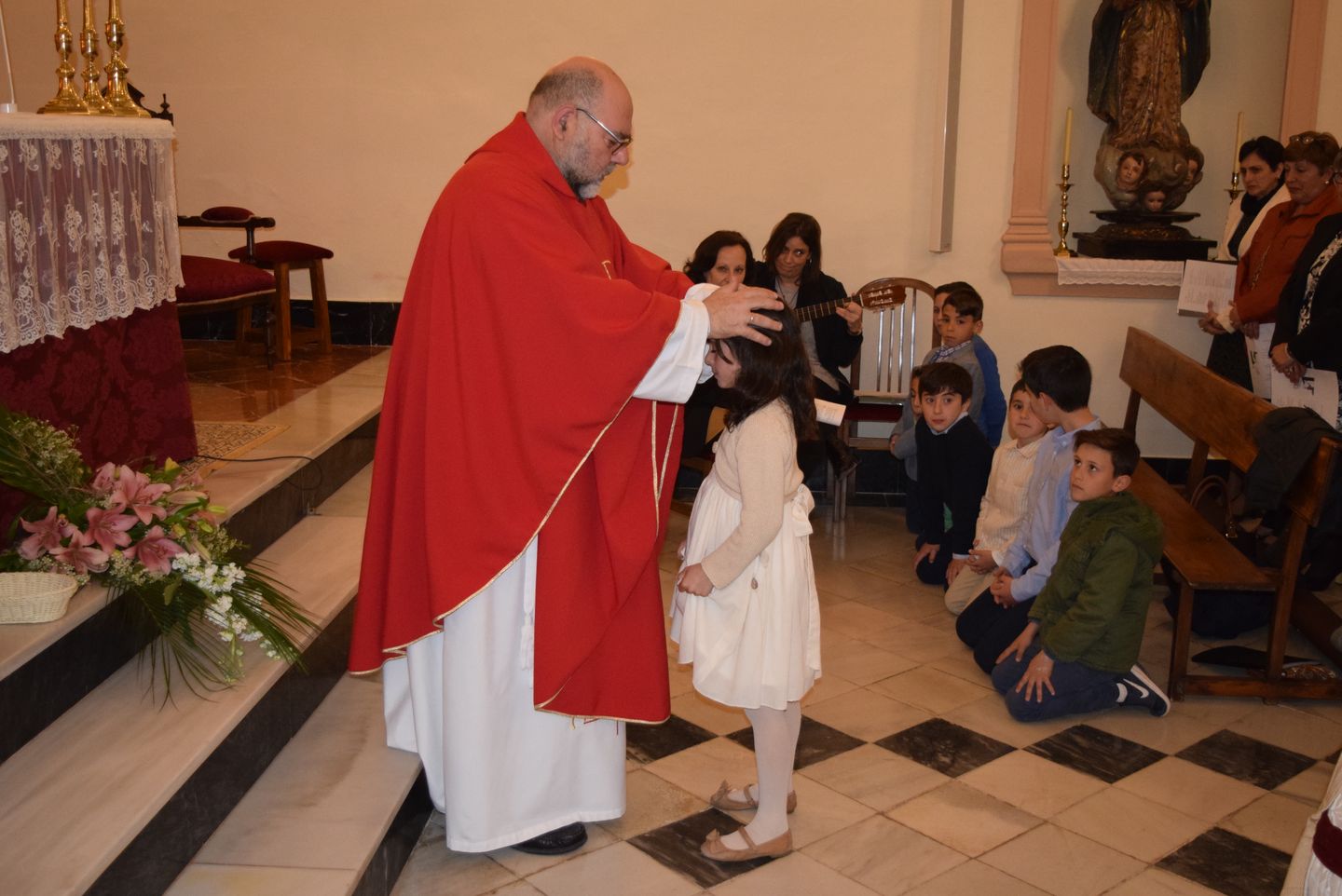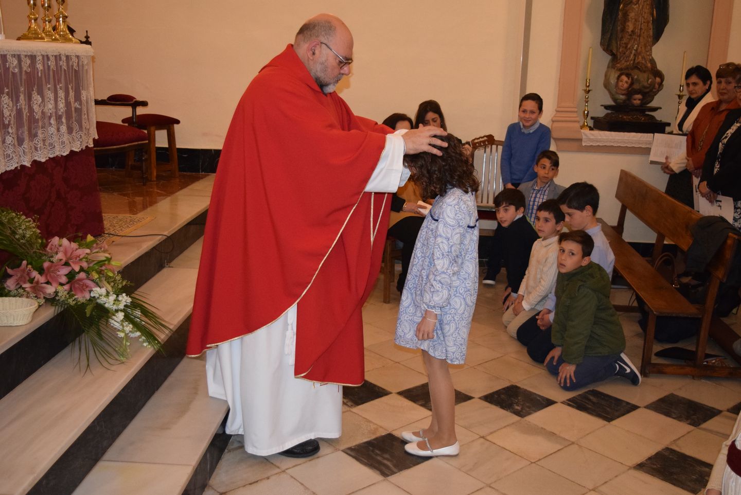 Sacramento de Confirmación, Iglesia de Ntra.Sra. Virgen de los Dolores, Viernes10 de Marzo, Ceremonia oficiada por D. Antonio Fernández López (Arcipreste de Antequera) y D. Juan Pablo Jiménez Hernández (Sacerdote Local). Recibieron la confirmación 9 niñas y 7 niños de las Localidades de Bobadilla Estación, Bobadilla Pueblo.