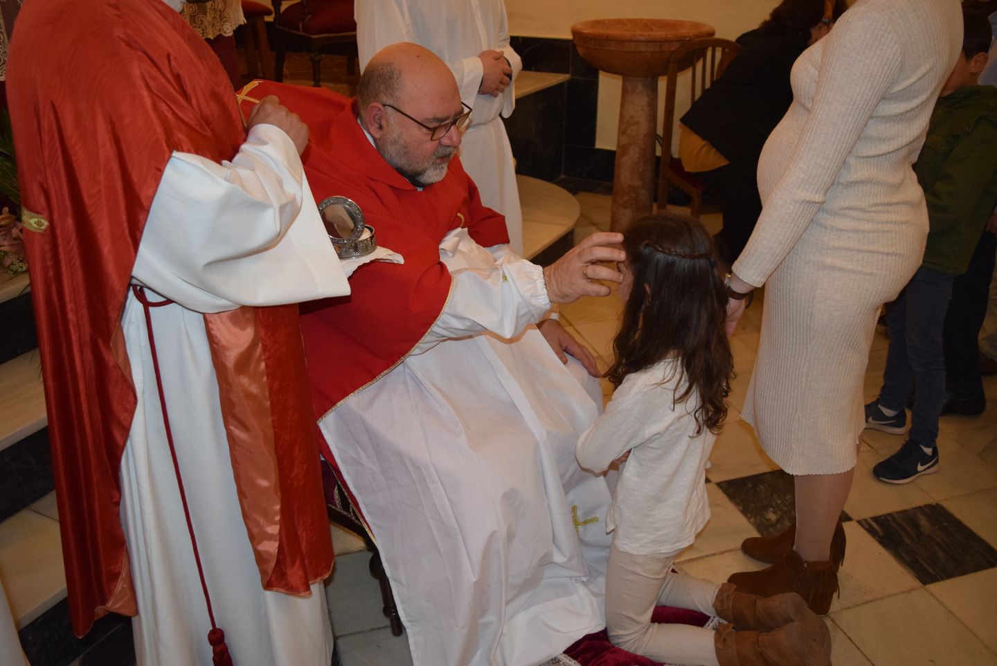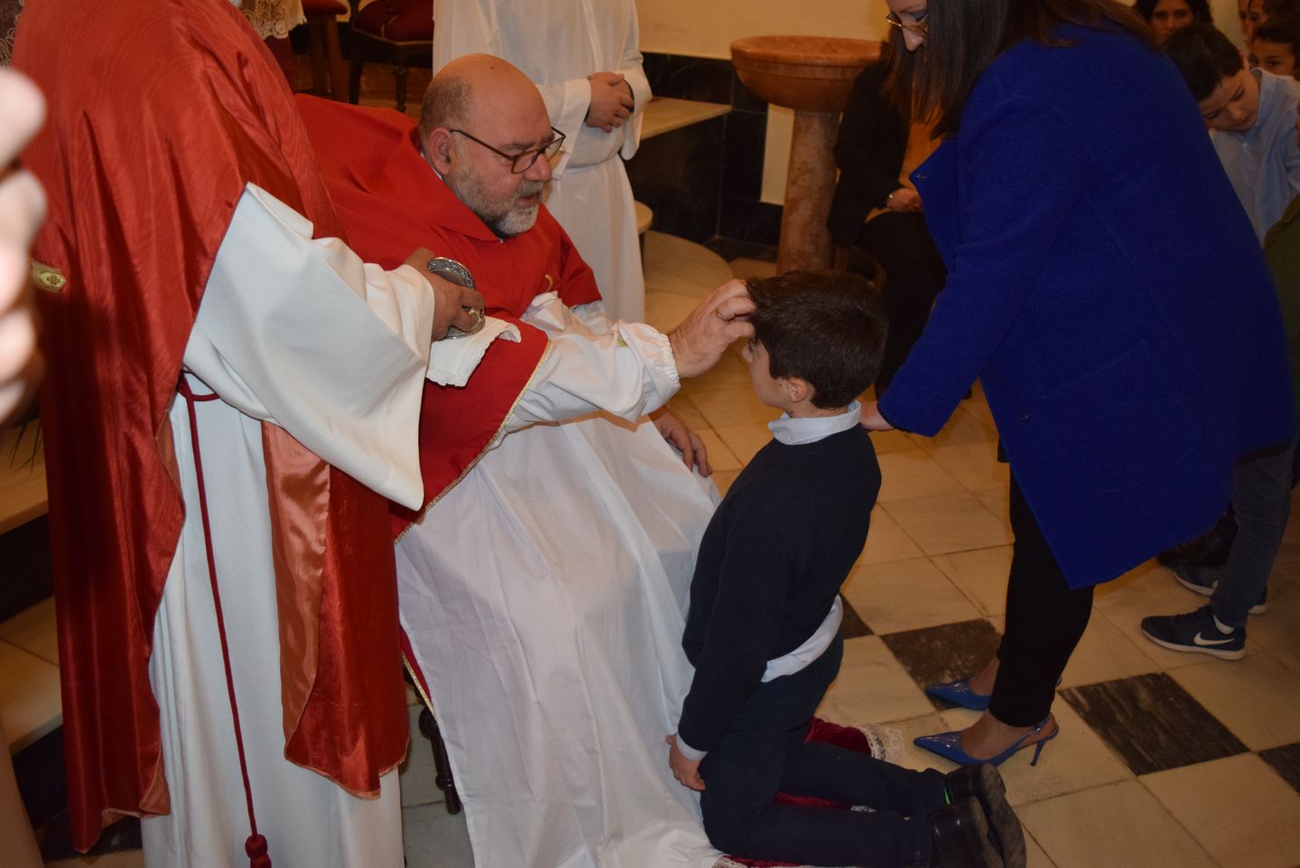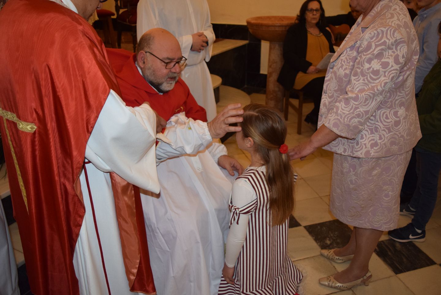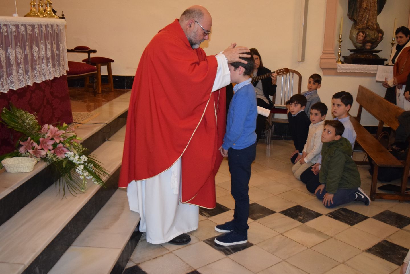 Sacramento de Confirmación, Iglesia de Ntra.Sra. Virgen de los Dolores, Viernes10 de Marzo, Ceremonia oficiada por D. Antonio Fernández López (Arcipreste de Antequera) y D. Juan Pablo Jiménez Hernández (Sacerdote Local). Recibieron la confirmación 9 niñas y 7 niños de las Localidades de Bobadilla Estación, Bobadilla Pueblo.